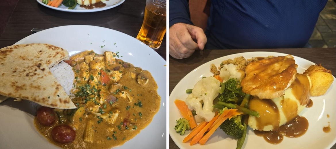 Lovely family friendly pub and restaurant in a country side setting. Staff were friendly and helpful. Our food was really nice, homemade and hot. We had their chicken Curry with rice amd chips, their lasagna with coleslaw and salad and their chicken with stuffing with mash and gravy. Really well priced place, not fancy but great for a homemade meal.